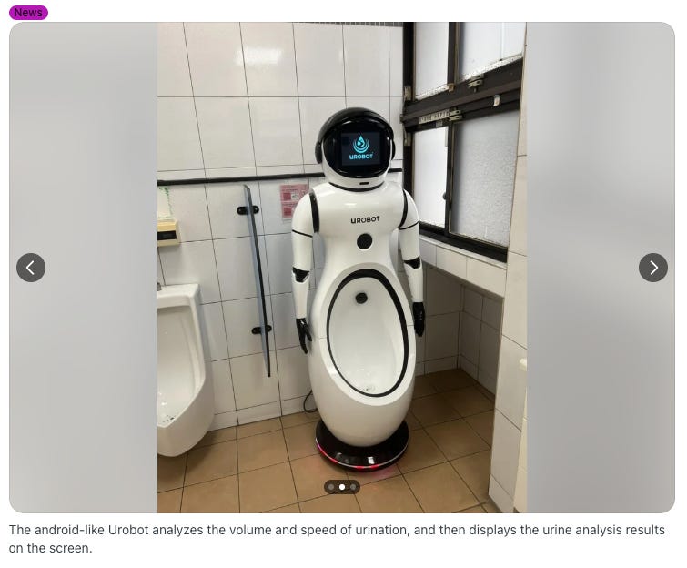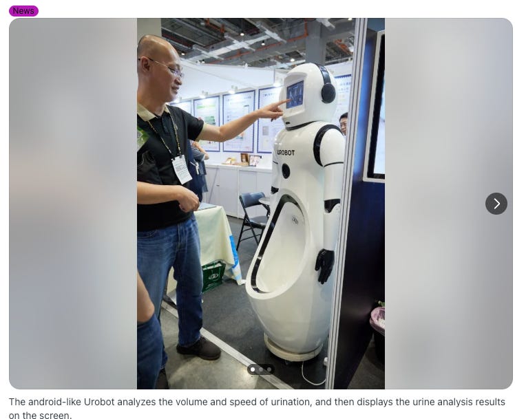 At a hospital in Taiwan, patients are encountering an unexpected assistant in the restroom: a humanoid robot named Urobot, designed to analyze urine samples in real time.